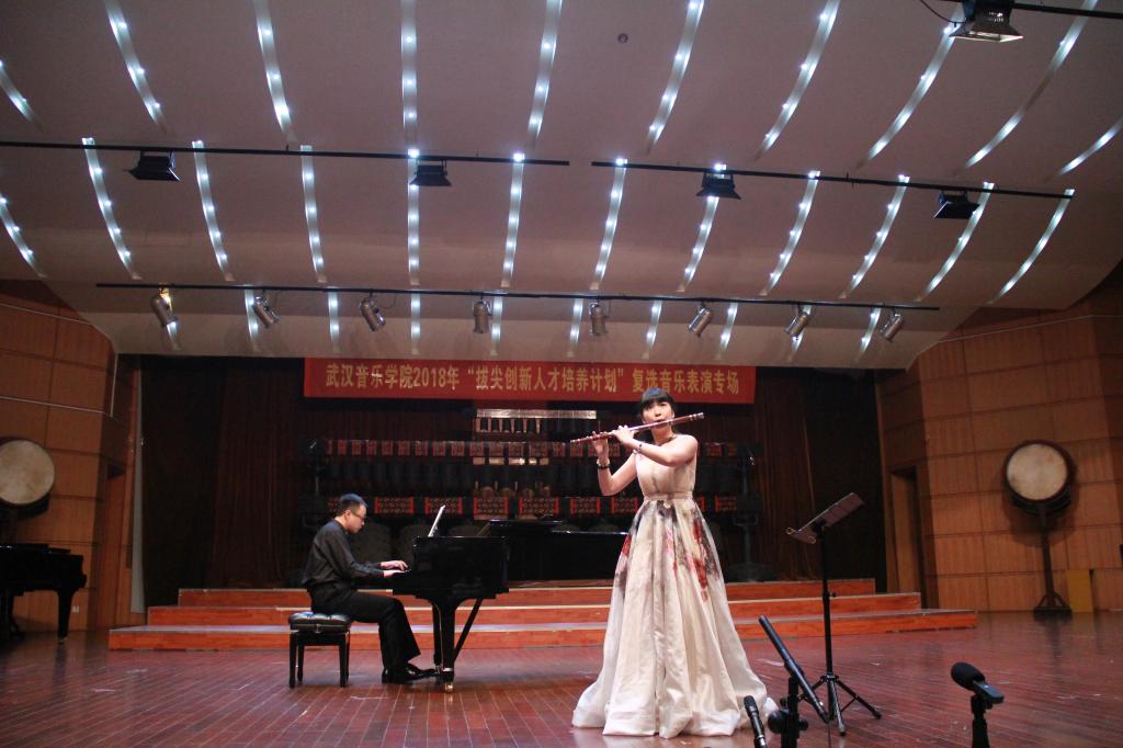 本网讯(学生记者 刘清逸 林上千妮)为进一步提高人才培养质量,探索实践“拔尖创新人才培养”的新机制,促进优秀音乐艺术人才脱颖而出。根据《武汉音乐学院“拔尖创新人才培养计划”实施方案(试行)》(武音院字〔2018〕17号)和《武汉音乐学院2018年“拔尖创新人才培养计划”选拔实施细则》(武音教务〔2018〕4号)精神,6月28日至29日晚,学院在展演楼民乐厅开展武汉音乐学院2018年“拔尖创新人才培养计划”音乐表演专场复选工作。党委书记陈兴荣,院长、党委副书记胡志平、副院长李幼平出席并观看比赛。